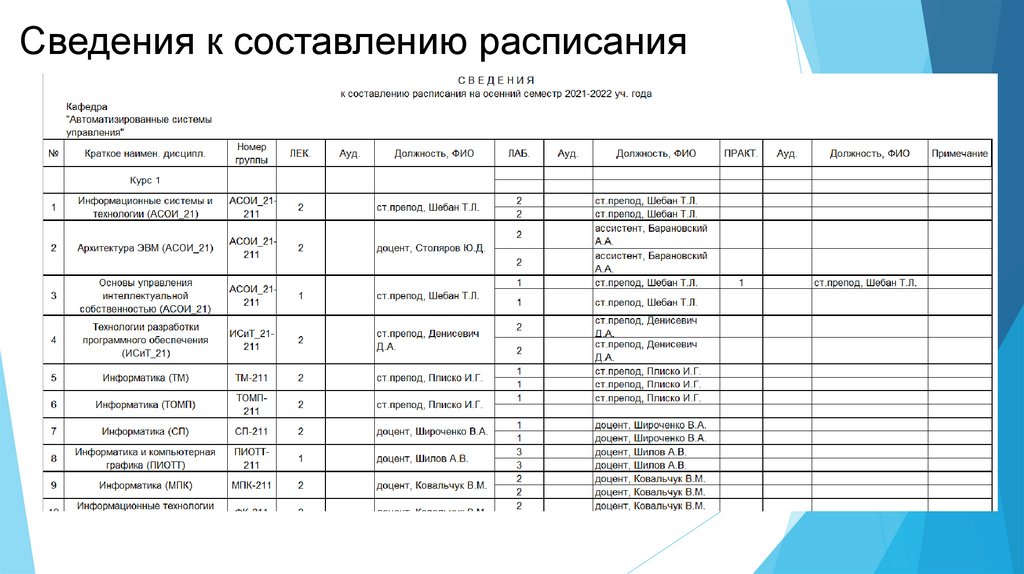 Сведения к составлению расписания4.