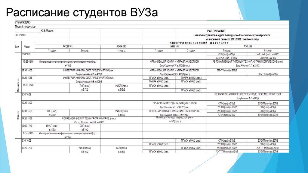 нагрузки преподавателей и расписание ВУЗа);