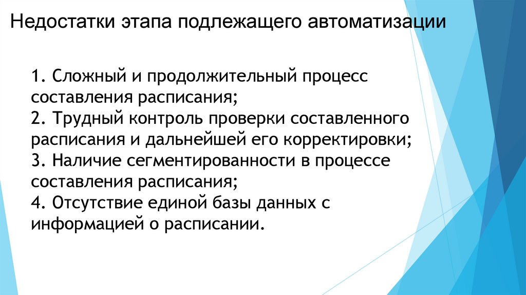 Недостатки этапа подлежащего автоматизации1. Сложный и продолжительный процесс