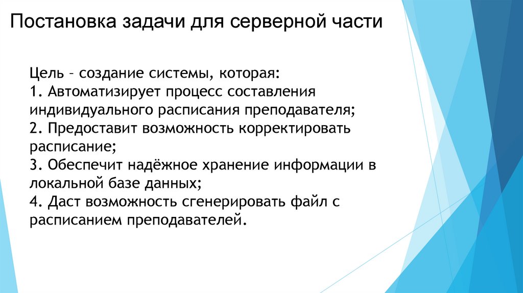 Постановка задачи для серверной частиЦель – создание системы, которая: