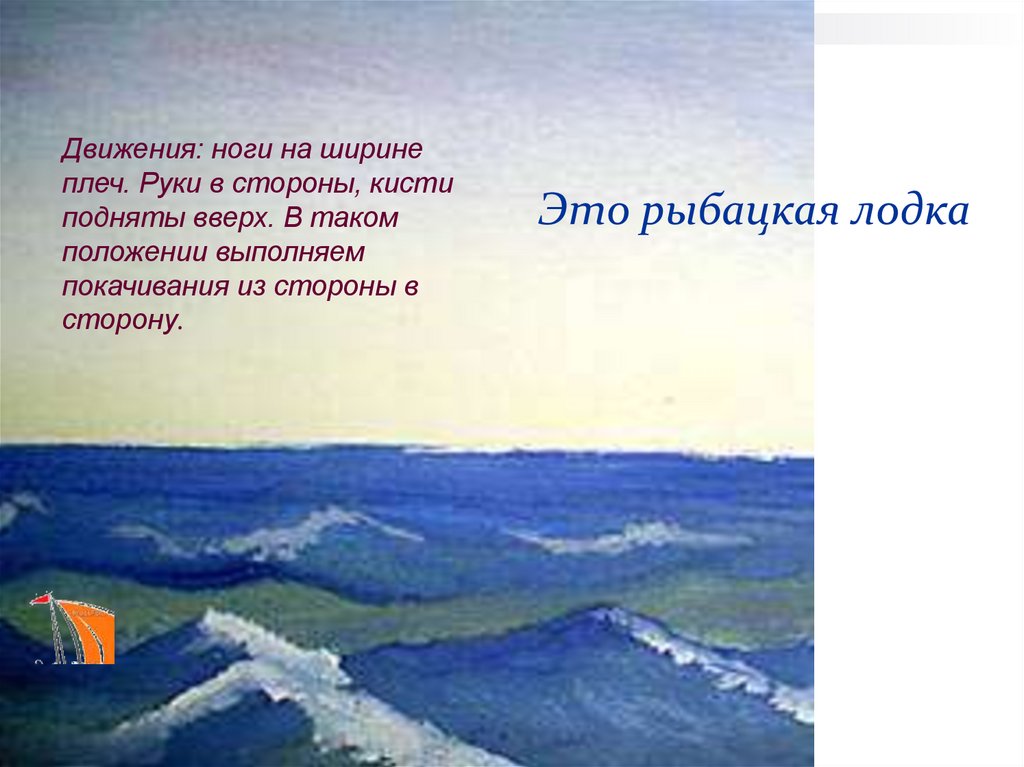 Движения: ноги на ширинеплеч. Руки в стороны, кисти