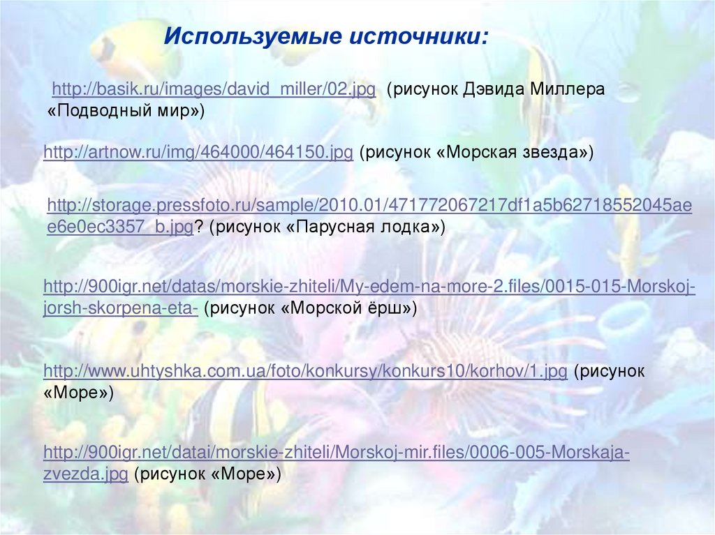 Используемые источники:http://basik.ru/images/david_miller/02.jpg (рисунок Дэвида Миллера