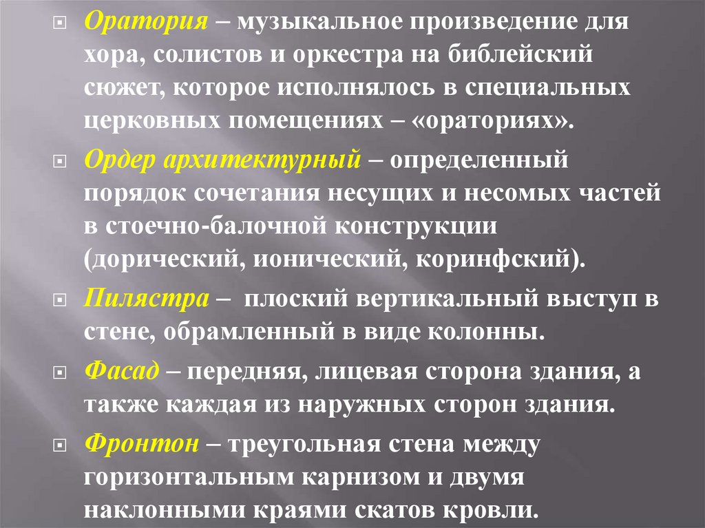 Оратория – музыкальное произведение дляхора, солистов и оркестра на библейский