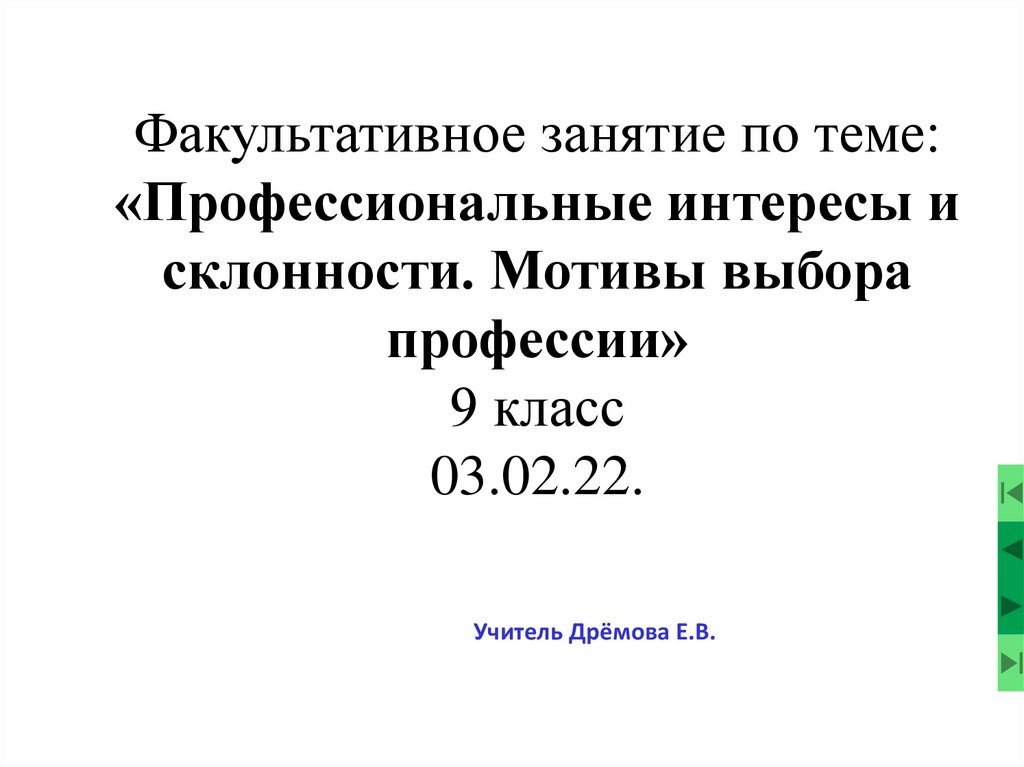 1. Факультативное занятие по теме: «Профессиональные интересы и склонности. Мотивы выбора профессии» 9 класс 03.02.22.