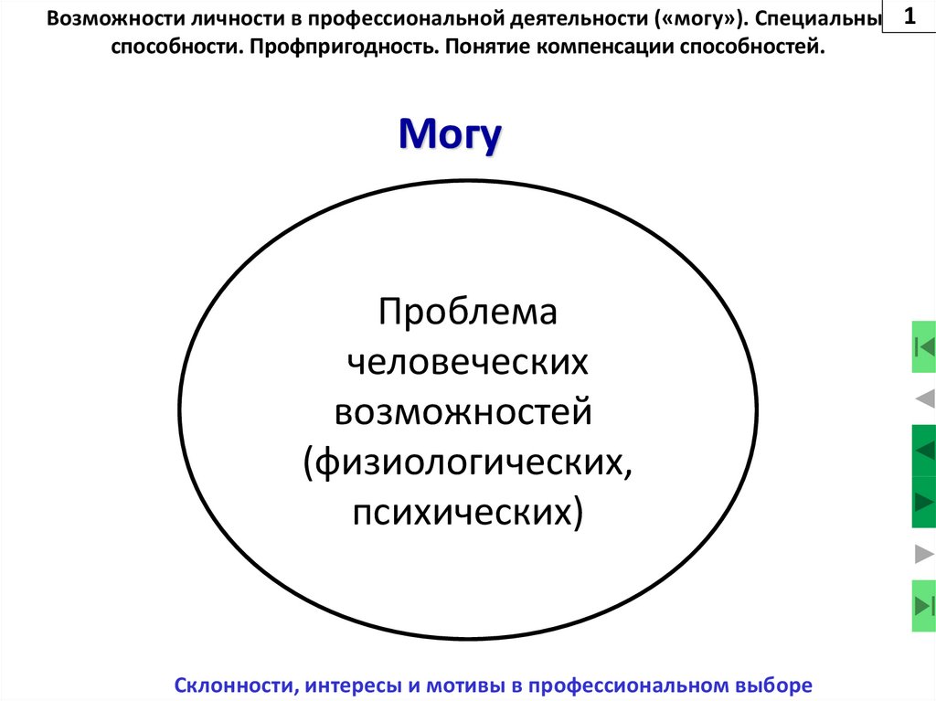 Возможности личности в профессиональной деятельности («могу»). Специальные 1способности. Профпригодность. Понятие компенсации способностей.