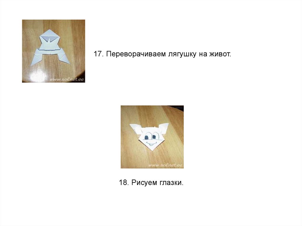 17. Переворачиваем лягушку на живот.18. Рисуем глазки.