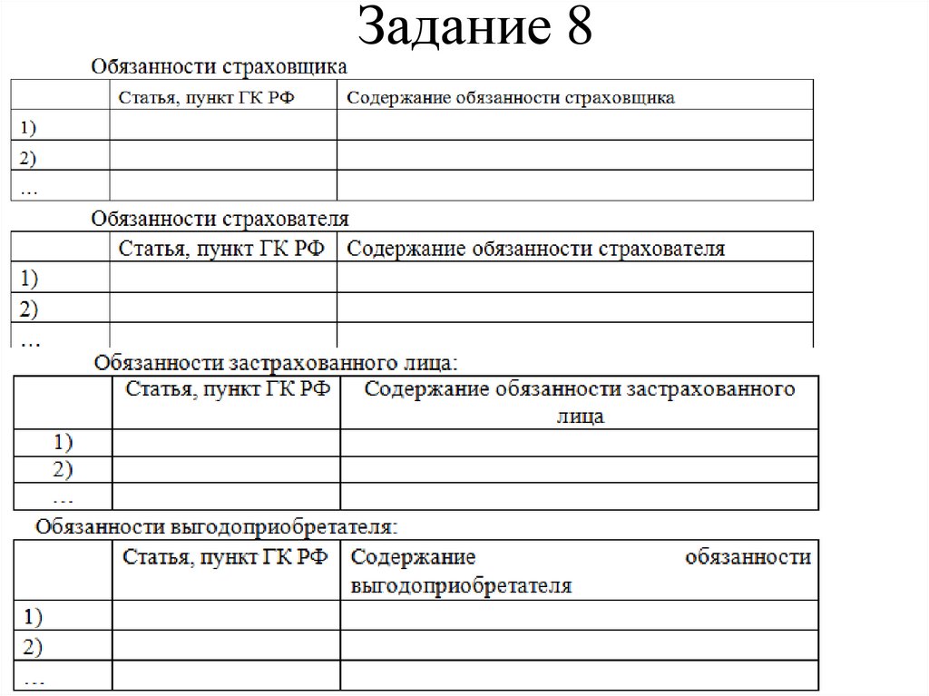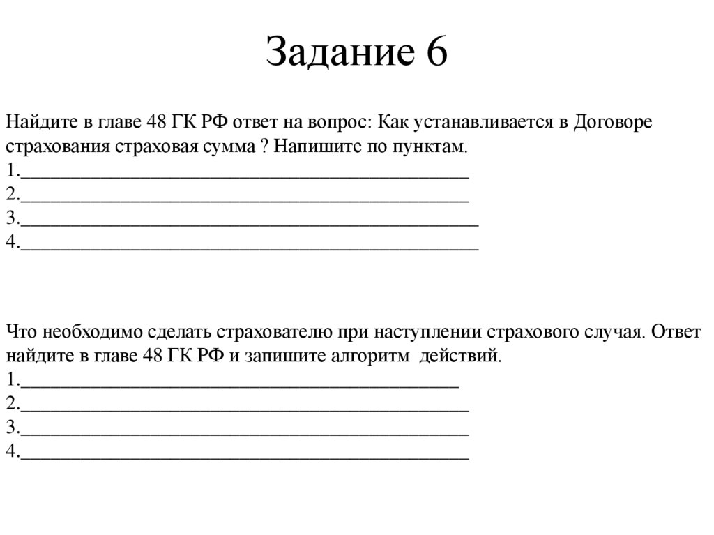 Задания 6, 7, 8 по дисциплине «Страховое дело»