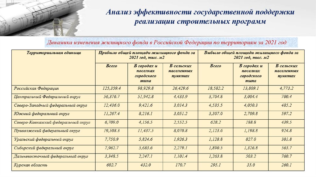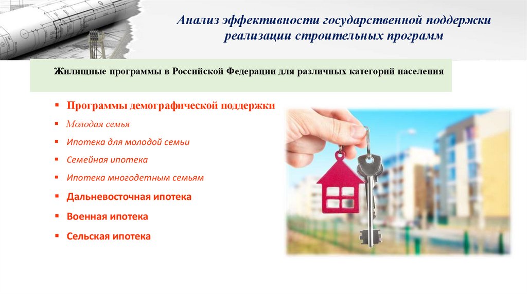 Анализ эффективности государственной поддержкиреализации строительных программ