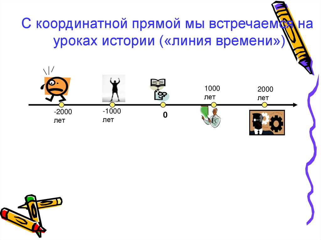 С координатной прямой мы встречаемся науроках истории («линия времени»)