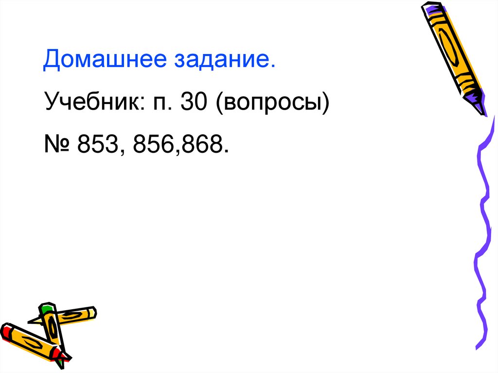 Домашнее задание.Учебник: п. 30 (вопросы)