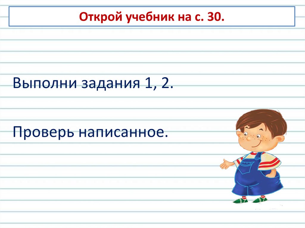 Открой учебник на с. 30.Выполни задания 1, 2.