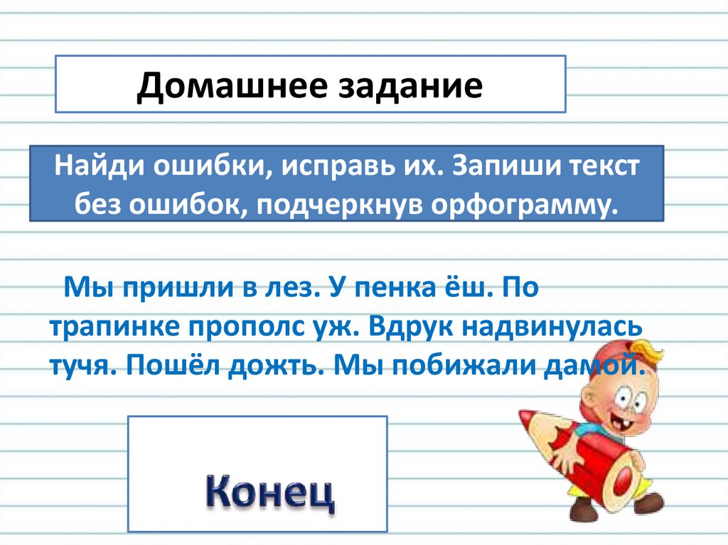 Домашнее заданиеНайди ошибки, исправь их. Запиши текст