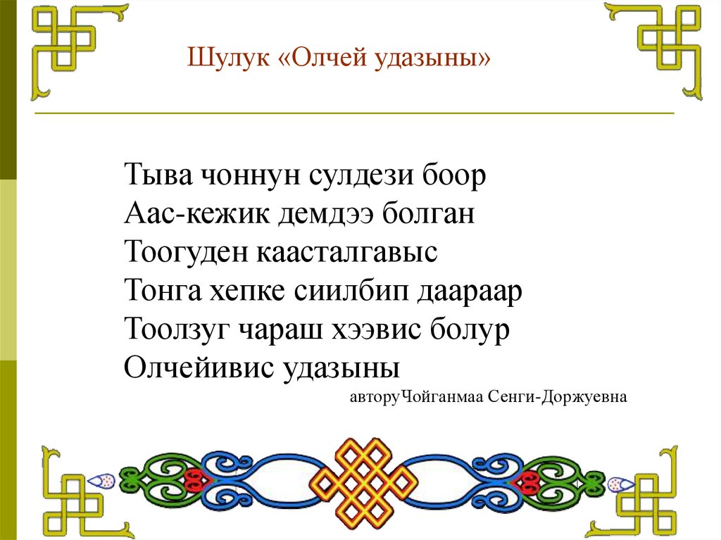 Шулук «Олчей удазыны»Тыва чоннун сулдези боор