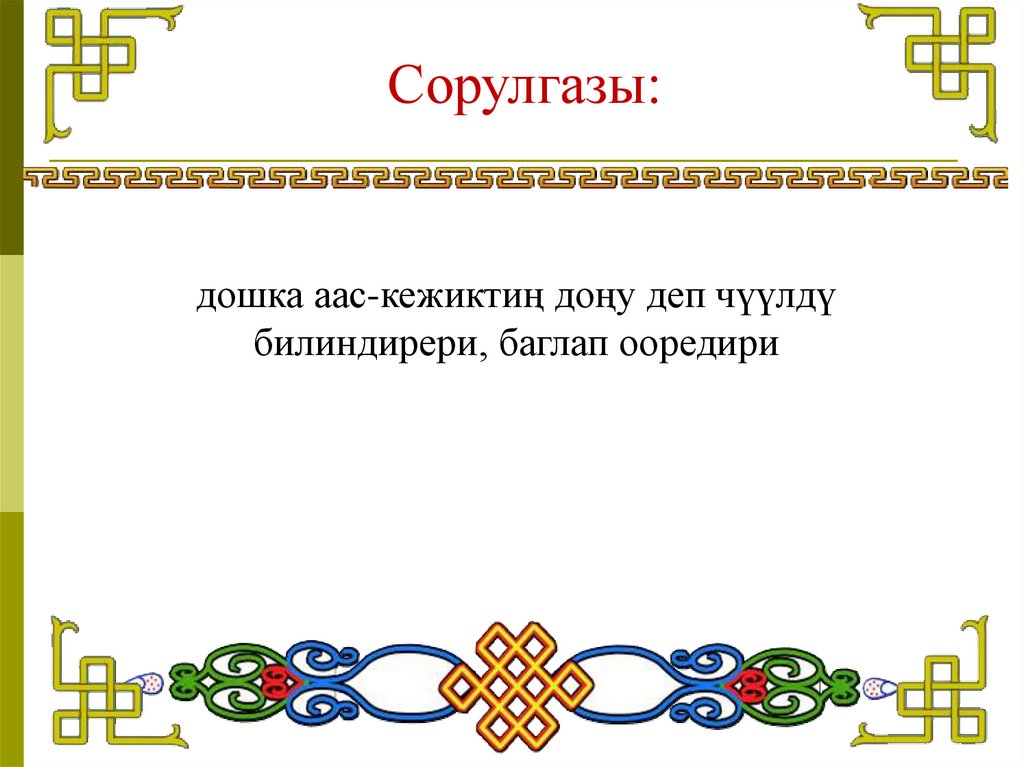 Сорулгазы:дошка аас-кежиктиң доңу деп чүүлдү