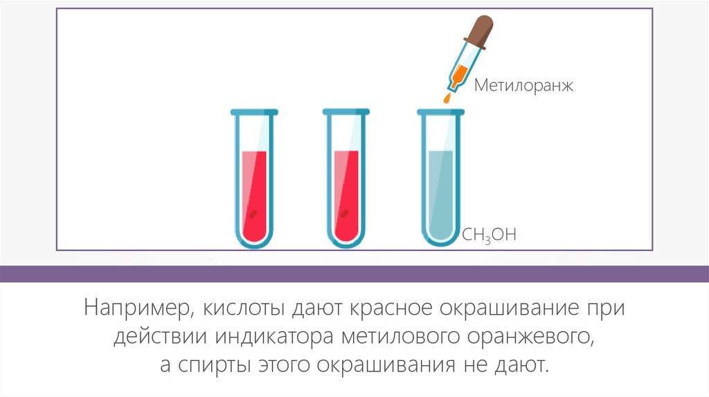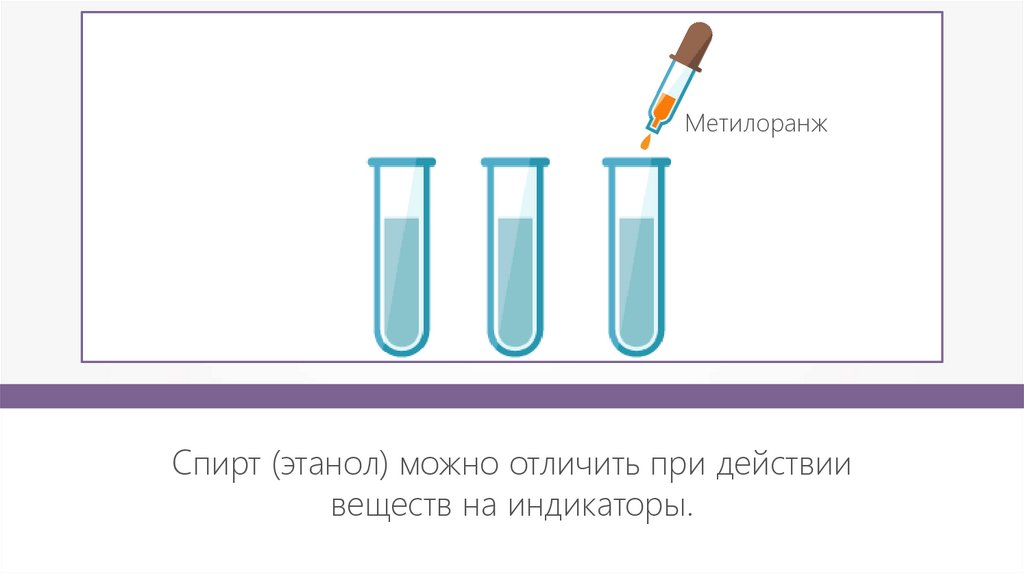 МетилоранжСпирт (этанол) можно отличить при действии