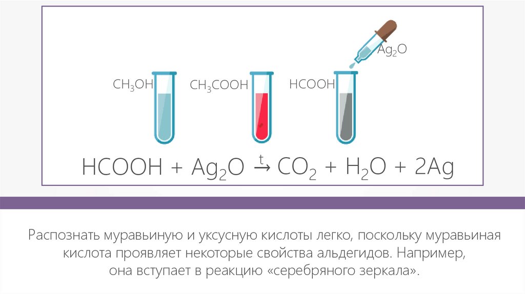 HСOOH + Ag2O → CO2 + H2O + 2Ag