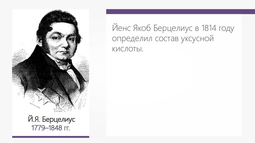 Йенс Якоб Берцелиус в 1814 годуопределил состав уксусной