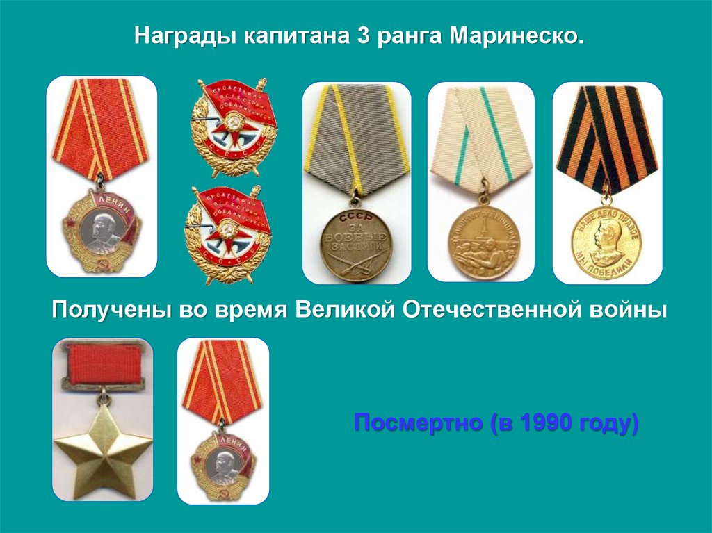 Награды капитана 3 ранга Маринеско.Получены во время Великой Отечественной войны