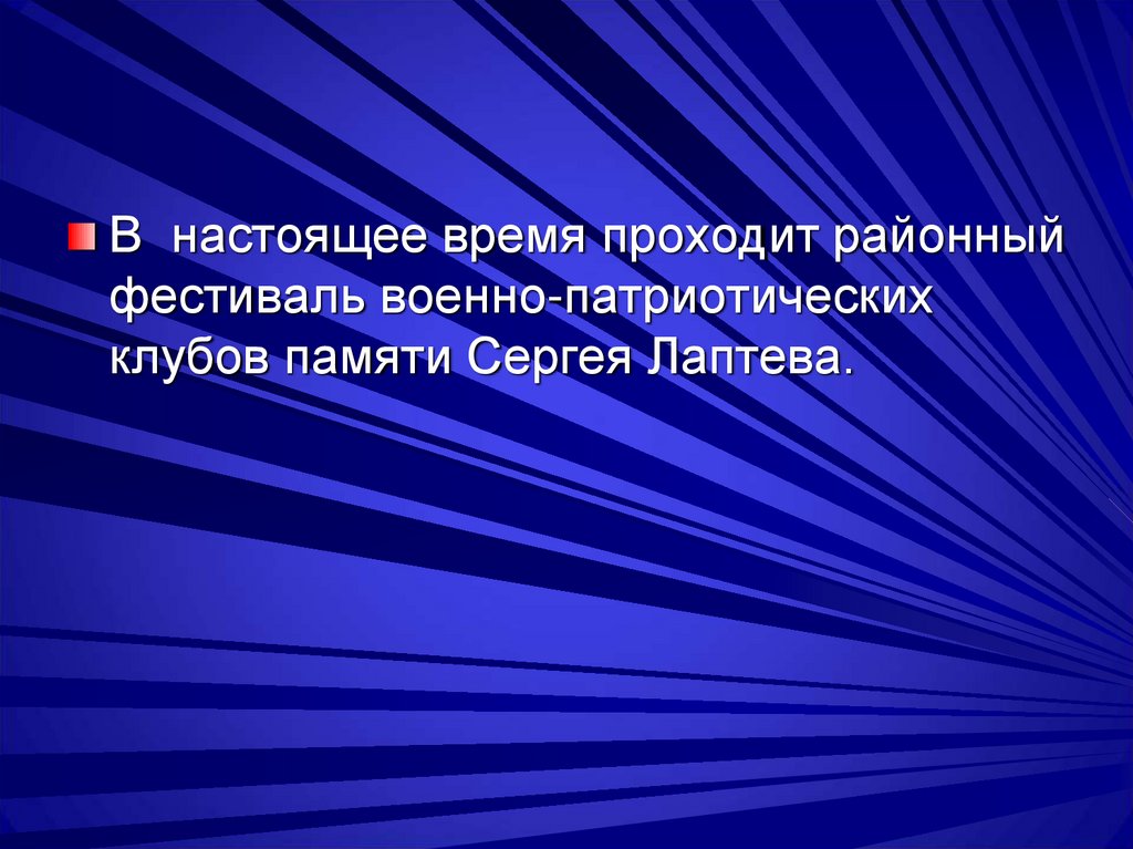 В настоящее время проходит районныйфестиваль военно-патриотических