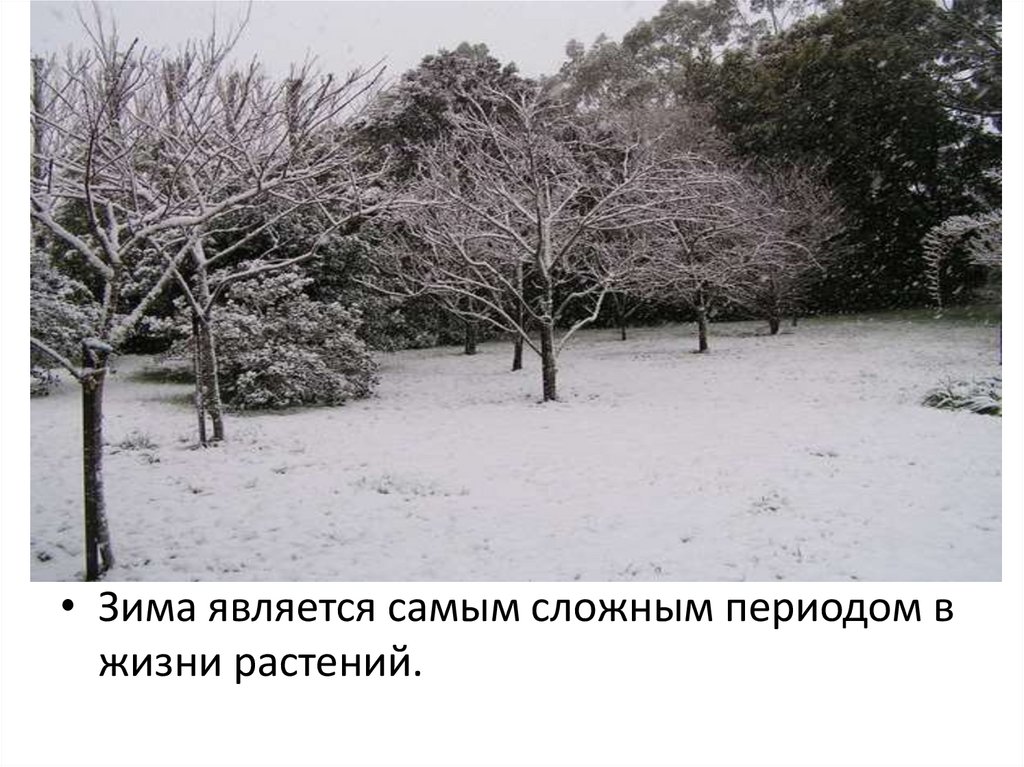 • Зима является самым сложным периодом вжизни растений.