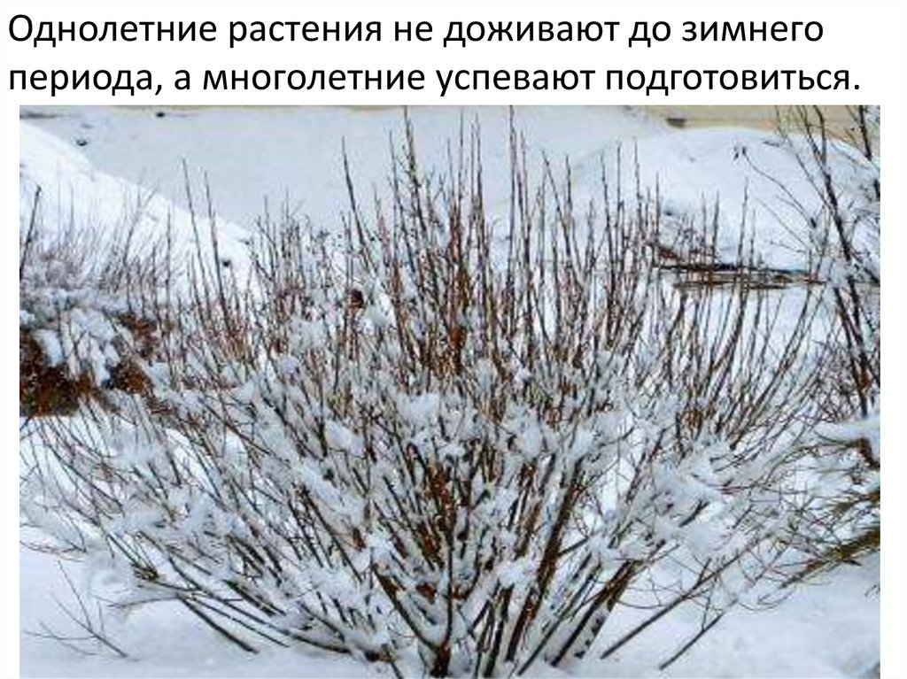 Однолетние растения не доживают до зимнегопериода, а многолетние успевают подготовиться.