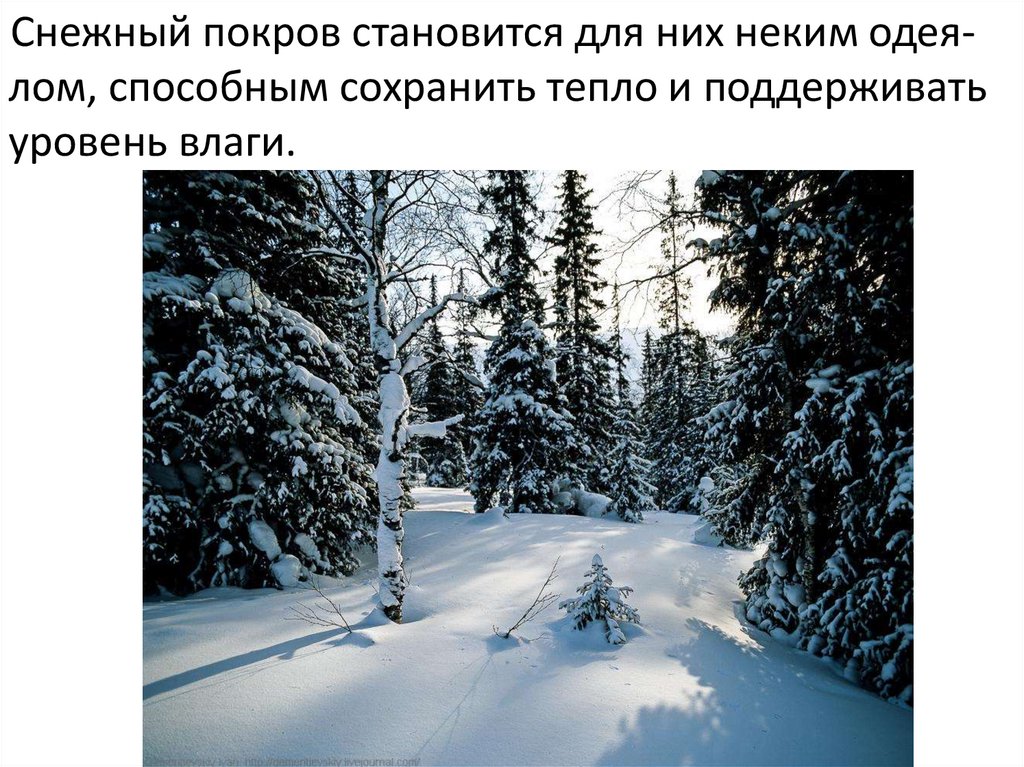 Снежный покров становится для них неким одеялом, способным сохранить тепло и поддерживатьуровень влаги.