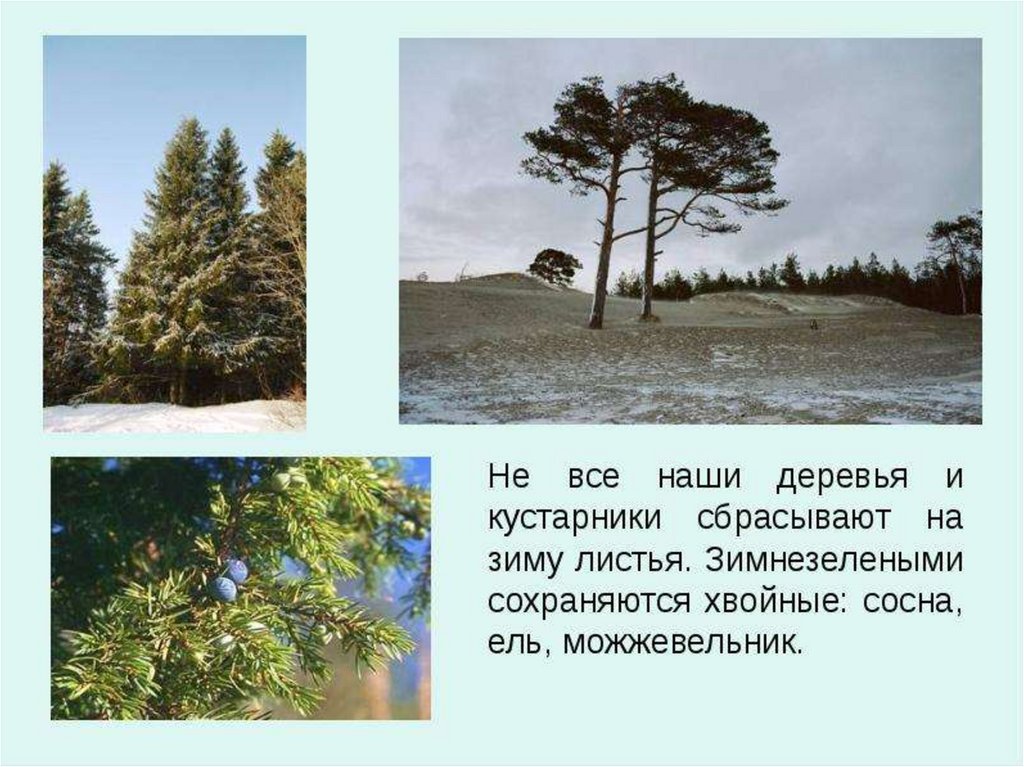 • А вечнозеленые виды не засыпают, а живут за счет того,что в их иголках содержится достаточное количество