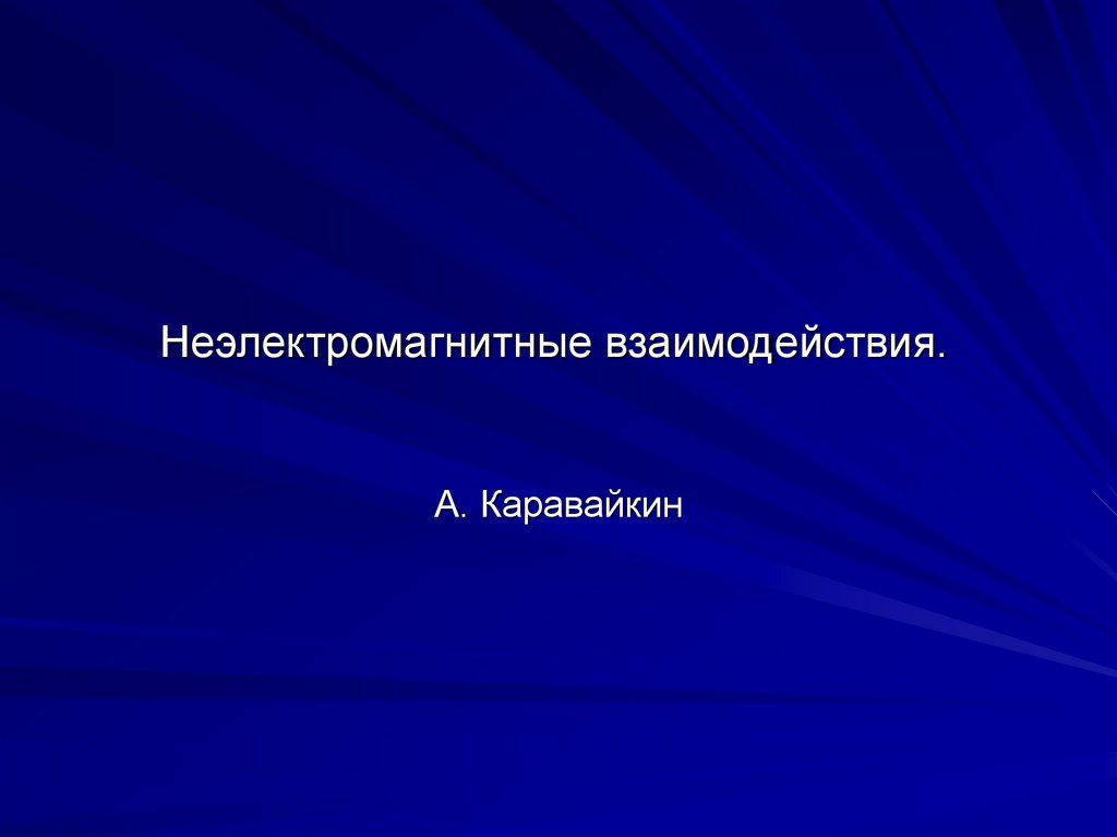 Каравайкин. А.В. О возможности использования неэлектромагнитного излучения для