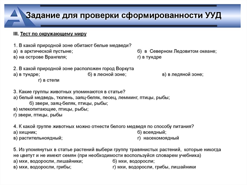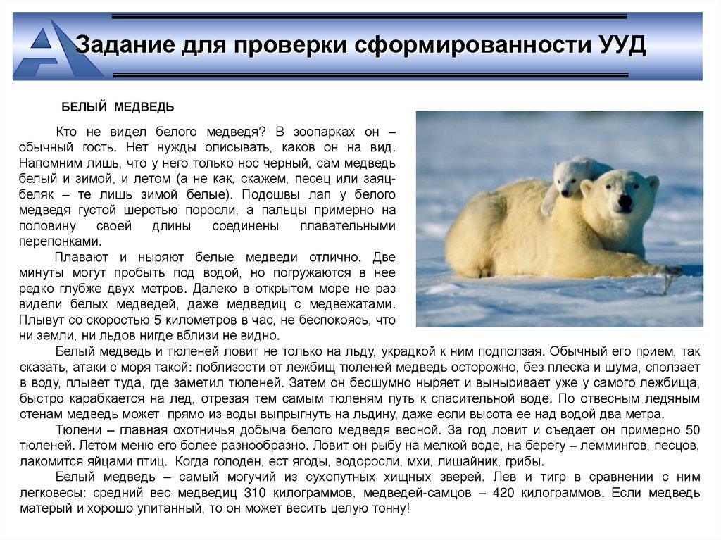 Задание для проверки сформированности УУДБЕЛЫЙ МЕДВЕДЬ