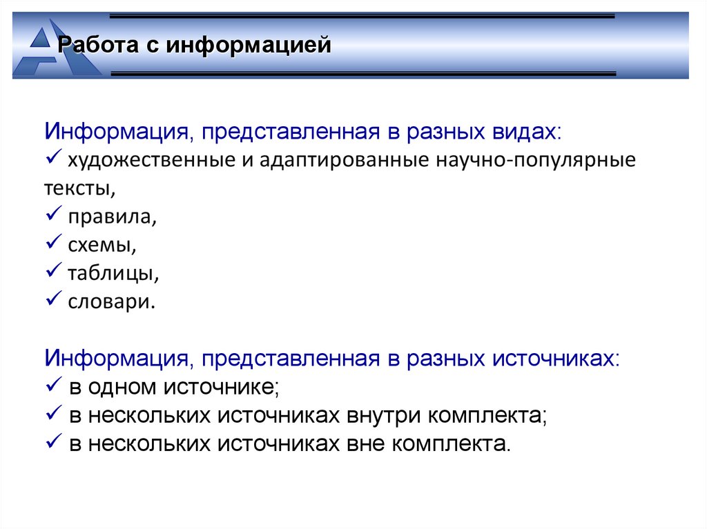 Работа с информациейИнформация, представленная в разных видах: