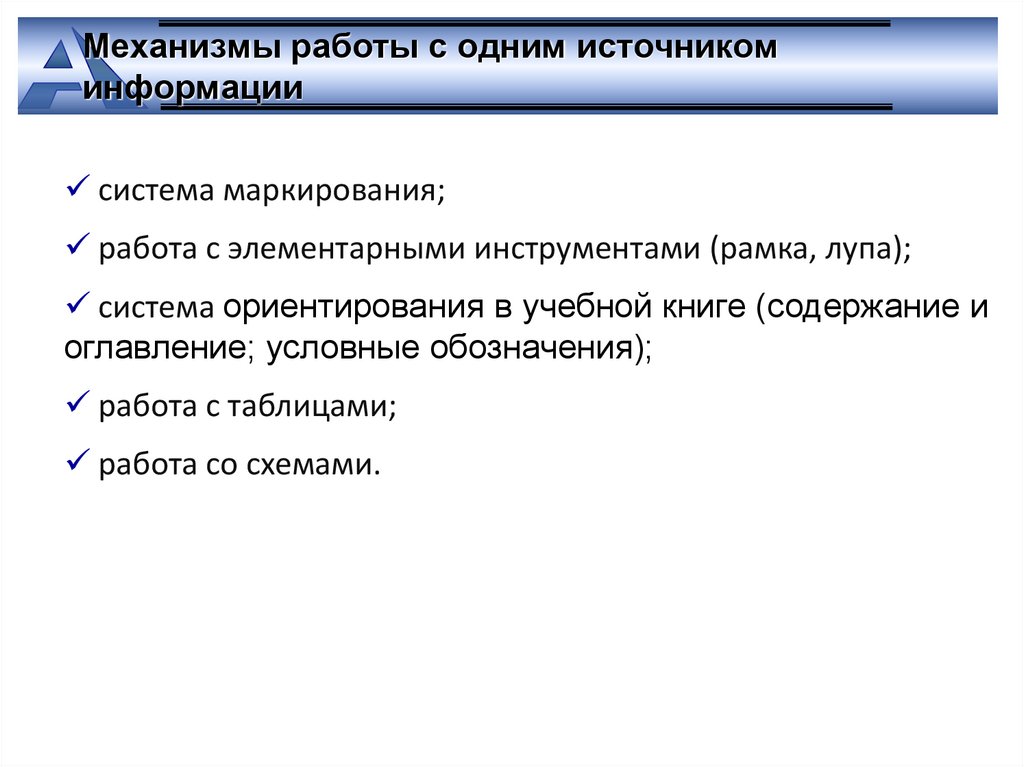 Механизмы работы с одним источникоминформации