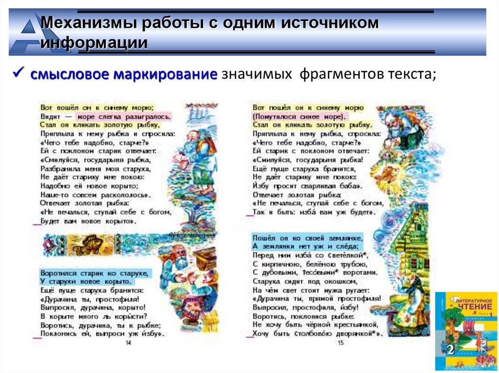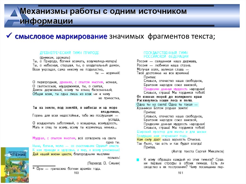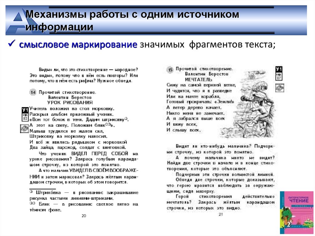 смысловое маркирование значимых фрагментов текста;