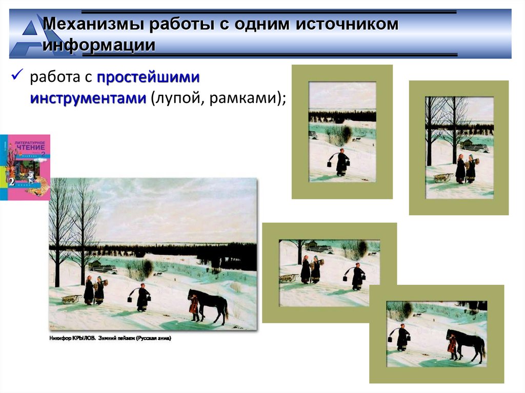 инструментами (лупой, рамками);