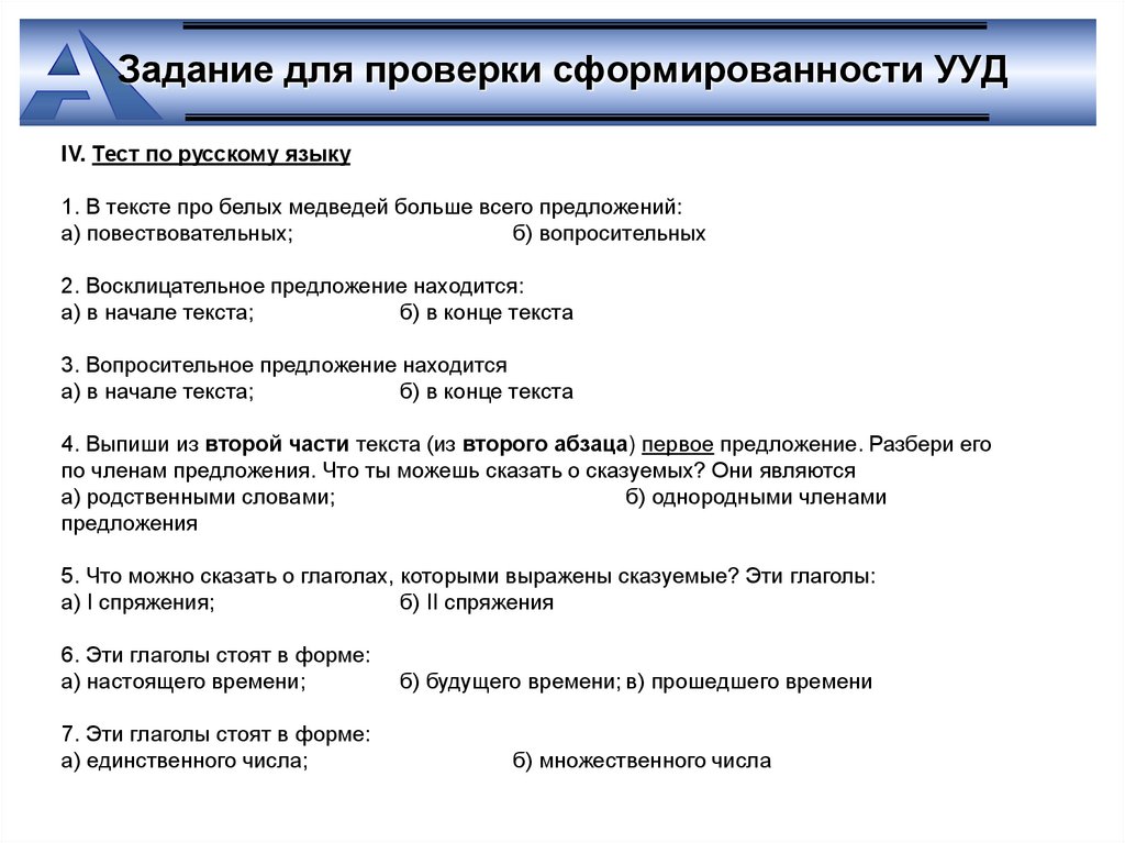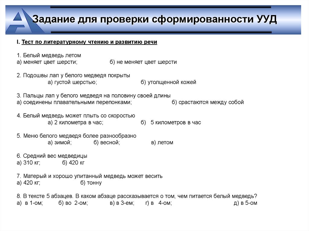 Задание для проверки сформированности УУДI. Тест по литературному чтению и развитию речи