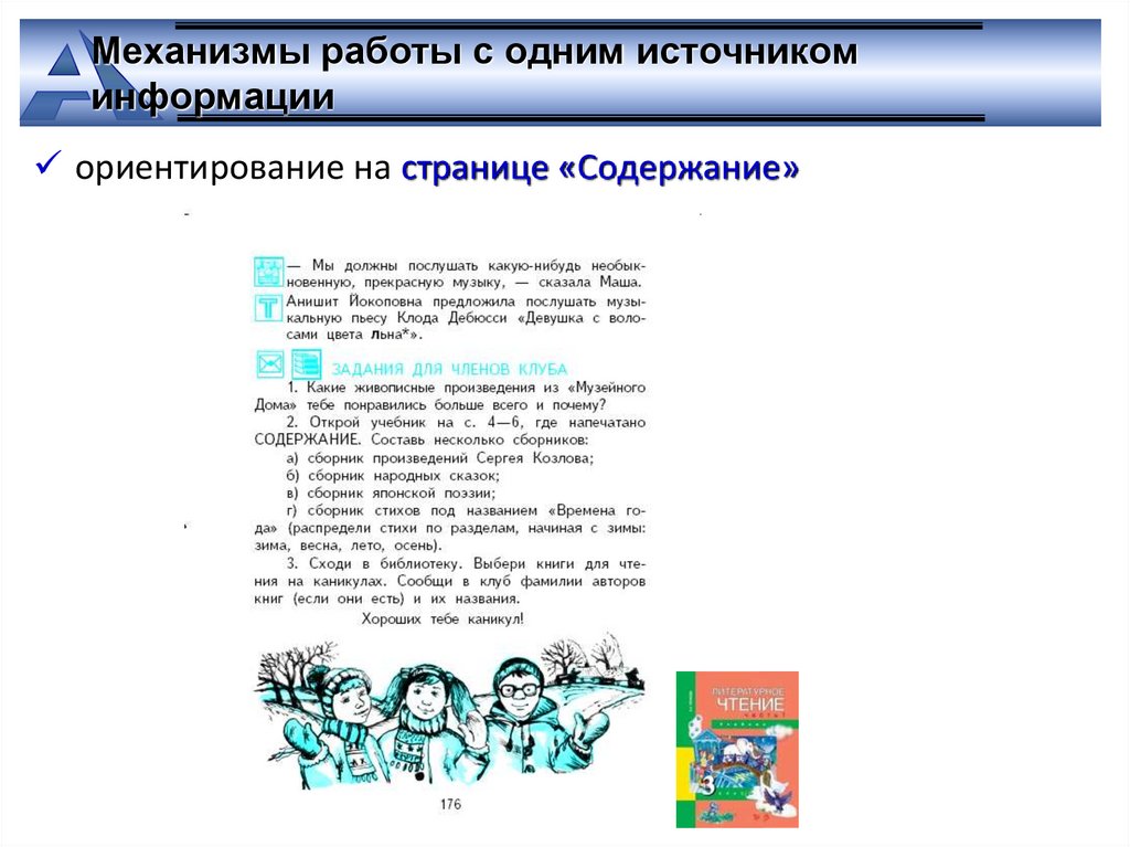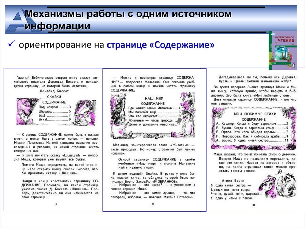ориентирование на странице «Содержание»
