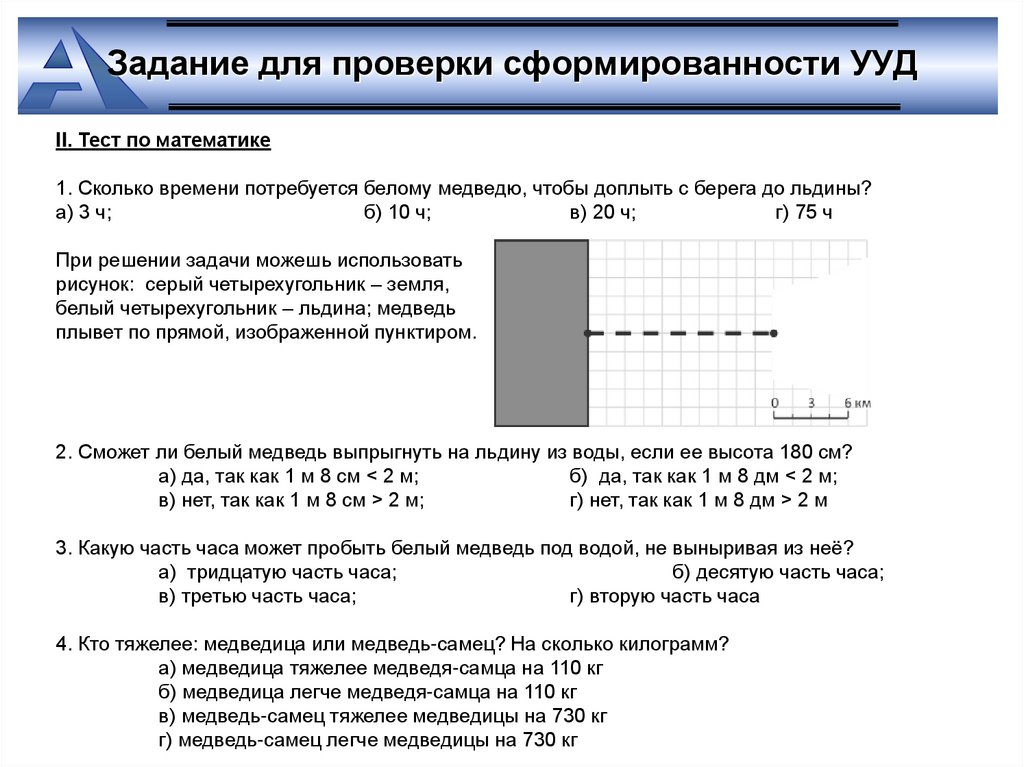 Задание для проверки сформированности УУДII. Тест по математике
