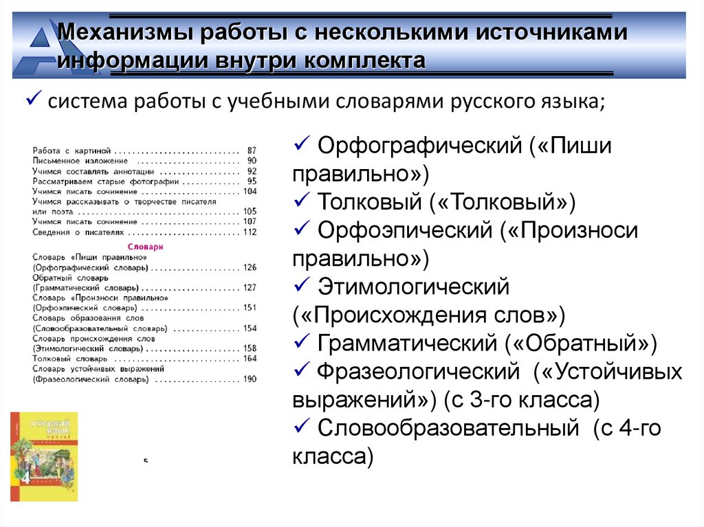 система работы с учебными словарями русского языка;