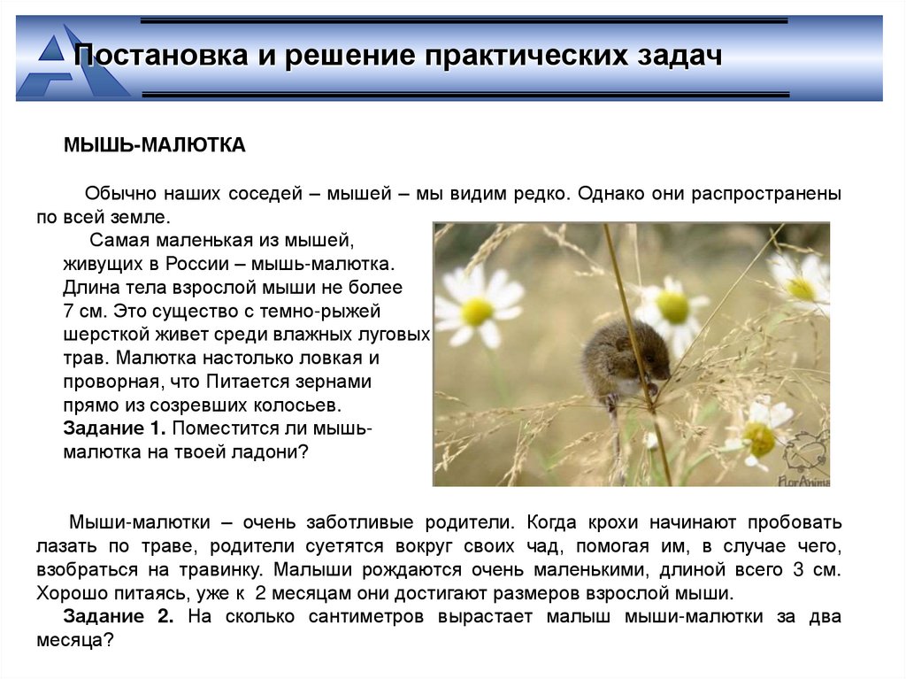 Постановка и решение практических задачМЫШЬ-МАЛЮТКА