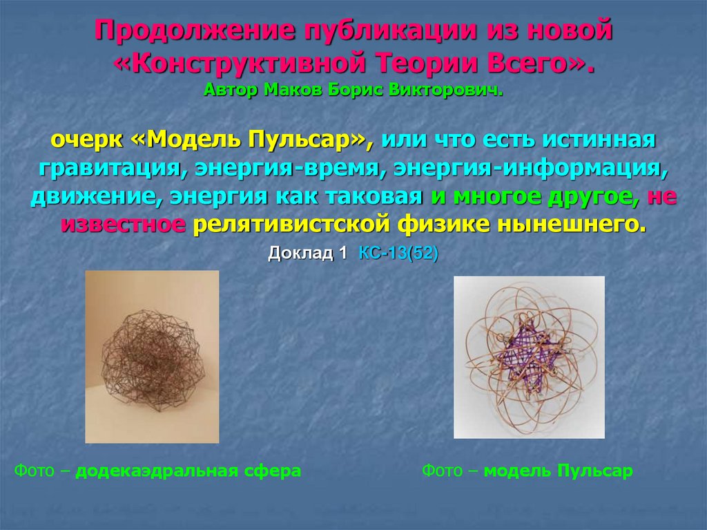 1. Продолжение публикации из новой «Конструктивной Теории Всего». Автор Маков Борис Викторович.