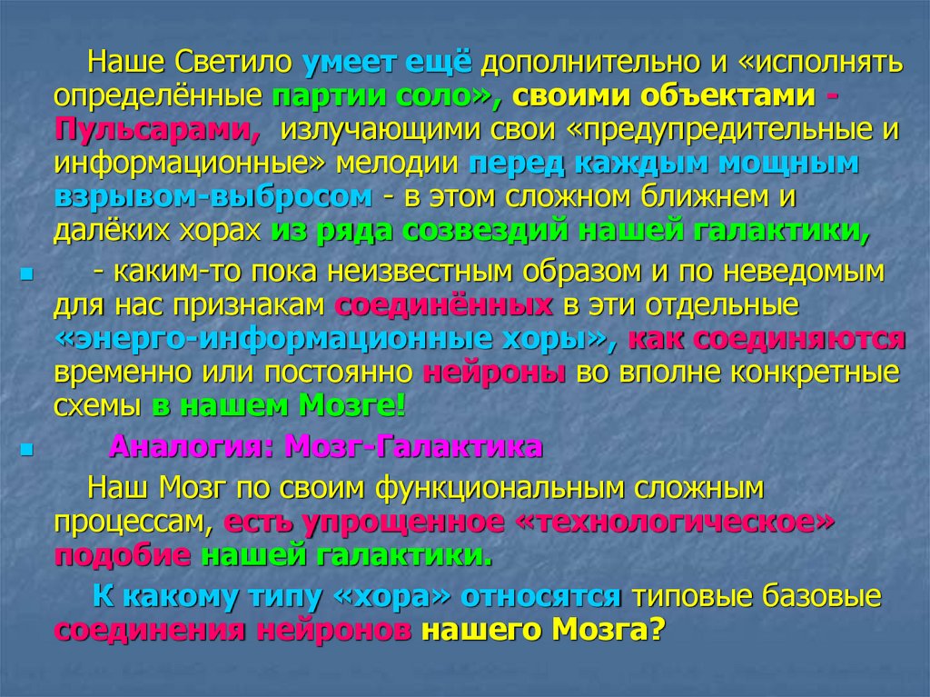 - Аналогия: Мозг-Галактика