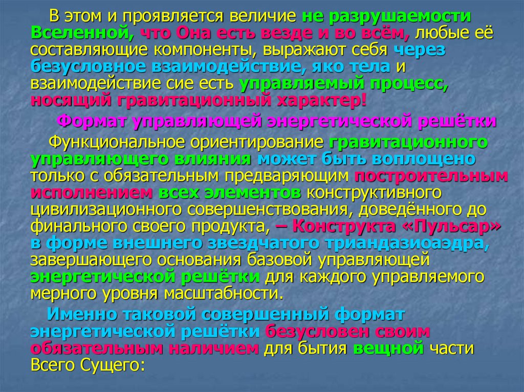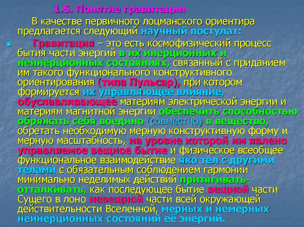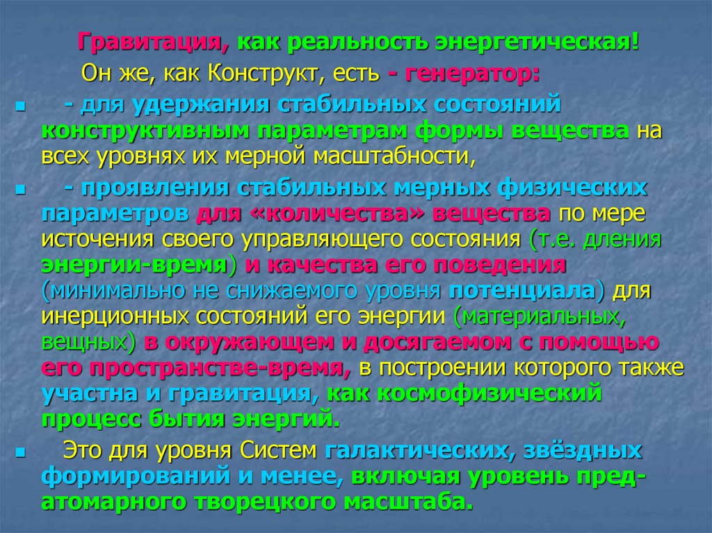 Гравитация, как реальность энергетическая!Он же, как Конструкт, есть - генератор: