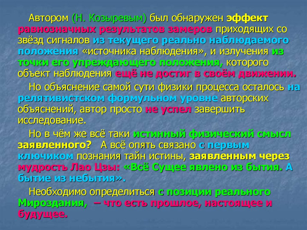 Смысл предположения Козырева