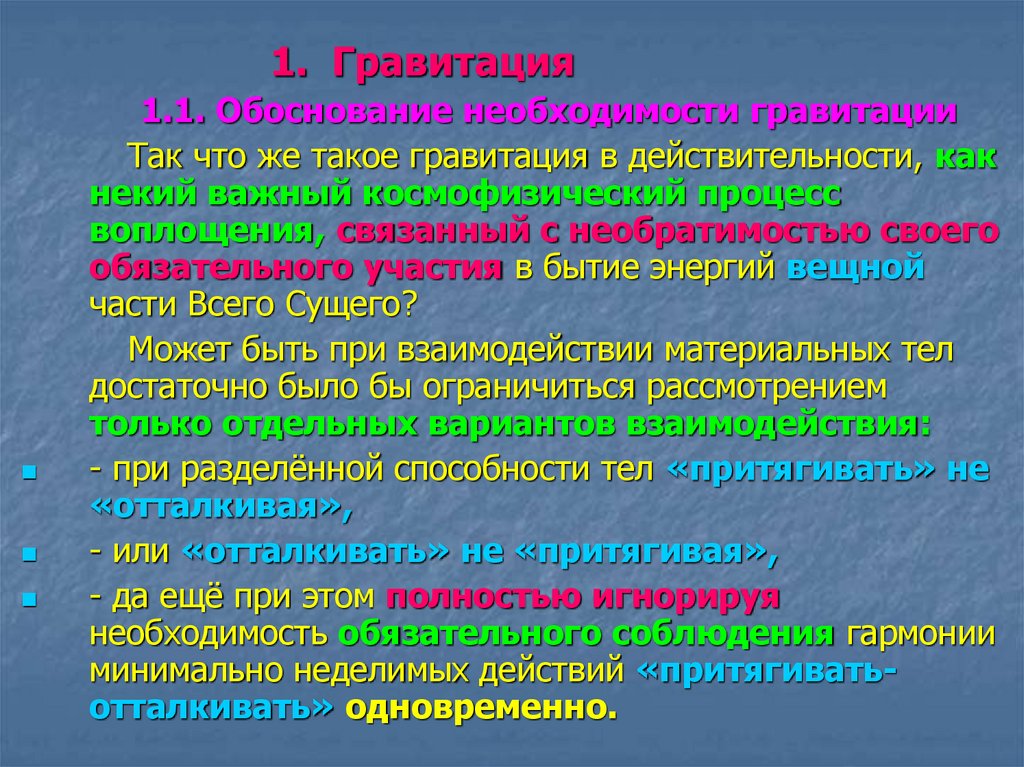 1. Гравитация1.1. Обоснование необходимости гравитации