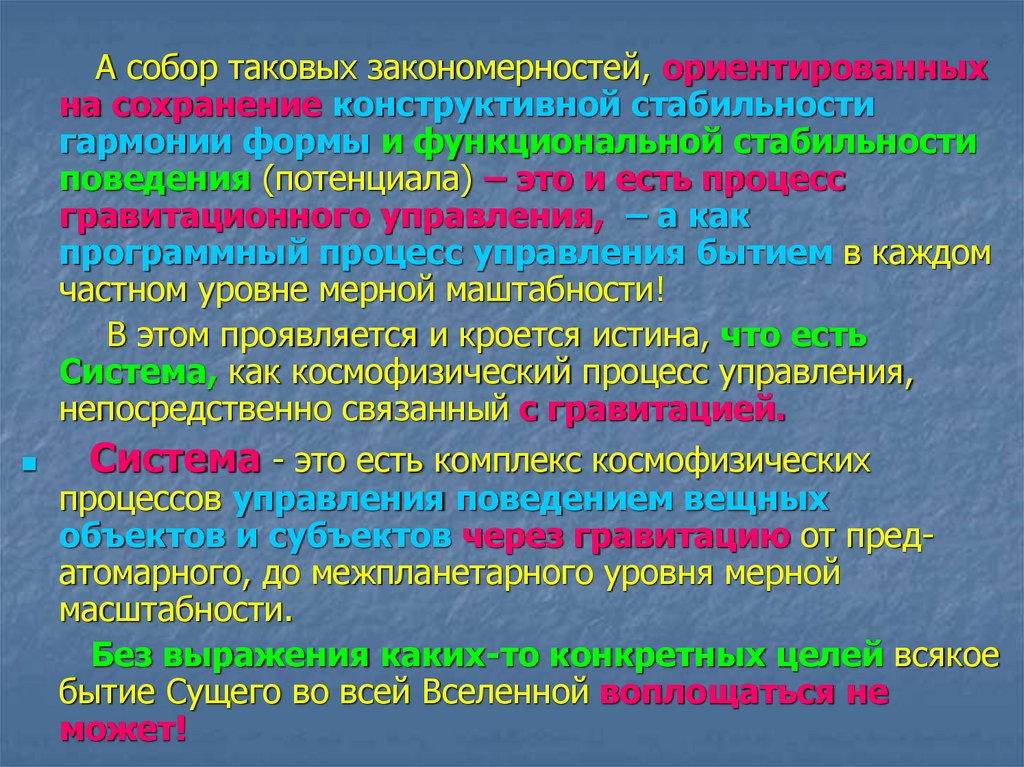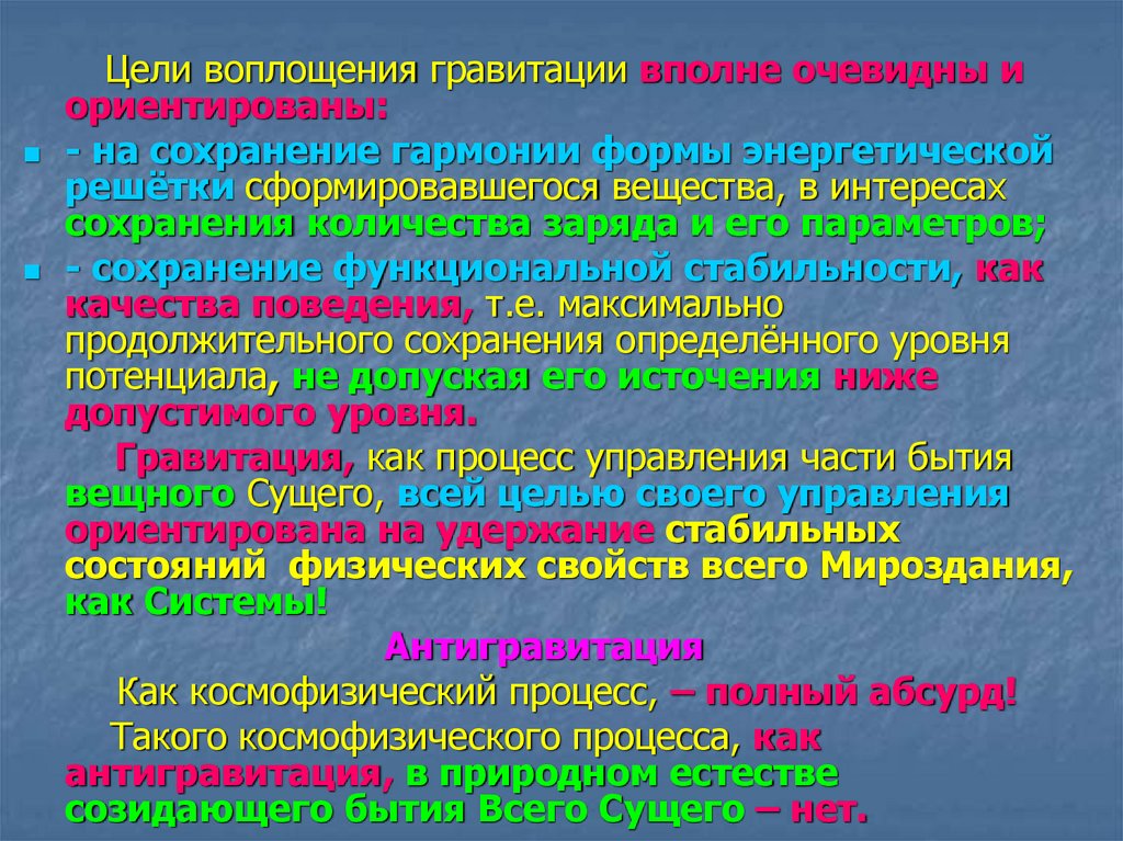 Гравитация – созидательный управляемый процесс