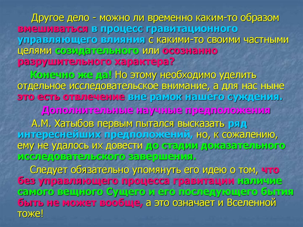 - Дополнительные научные предположения