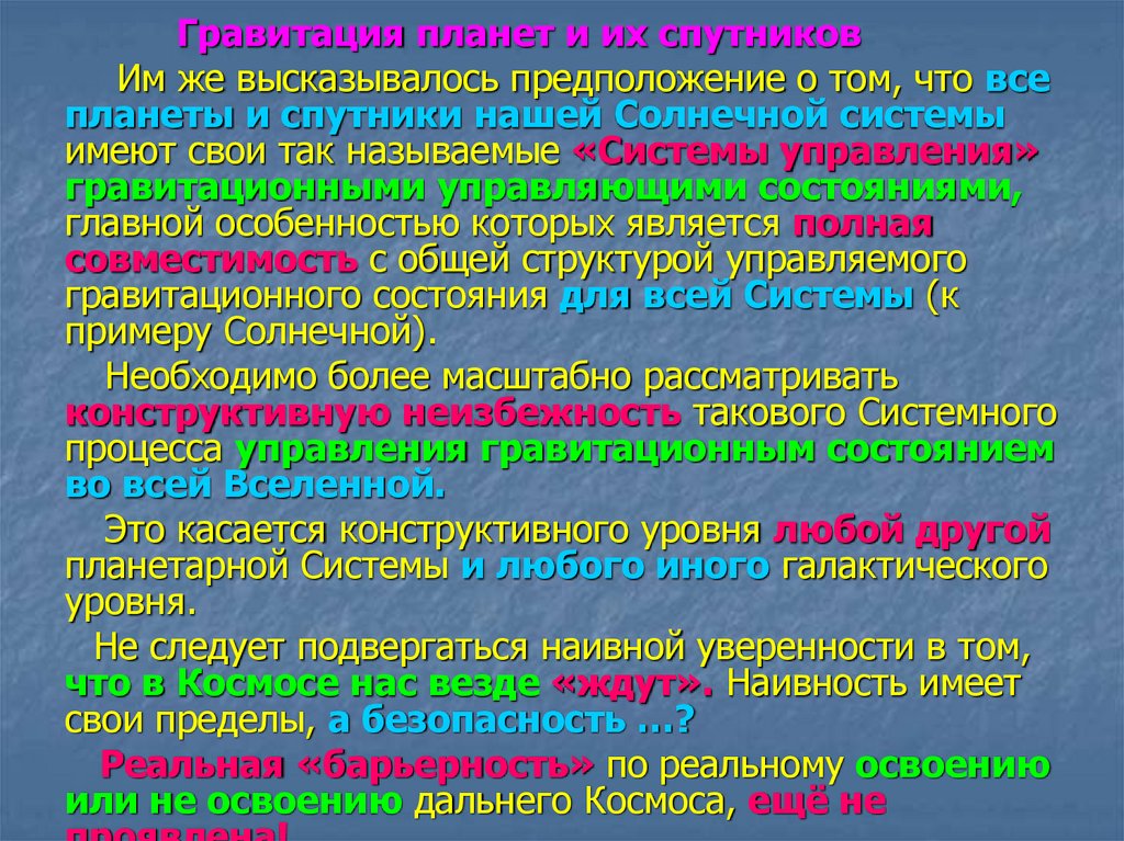 Гравитация планет и их спутниковИм же высказывалось предположение о том, что все