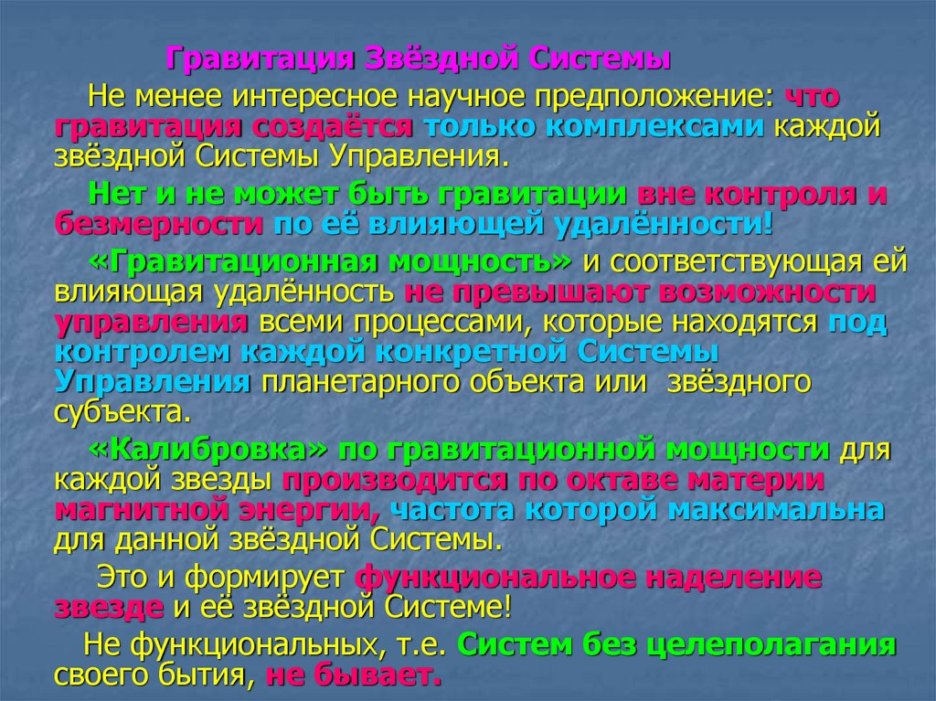 Гравитация Звёздной СистемыНе менее интересное научное предположение: что