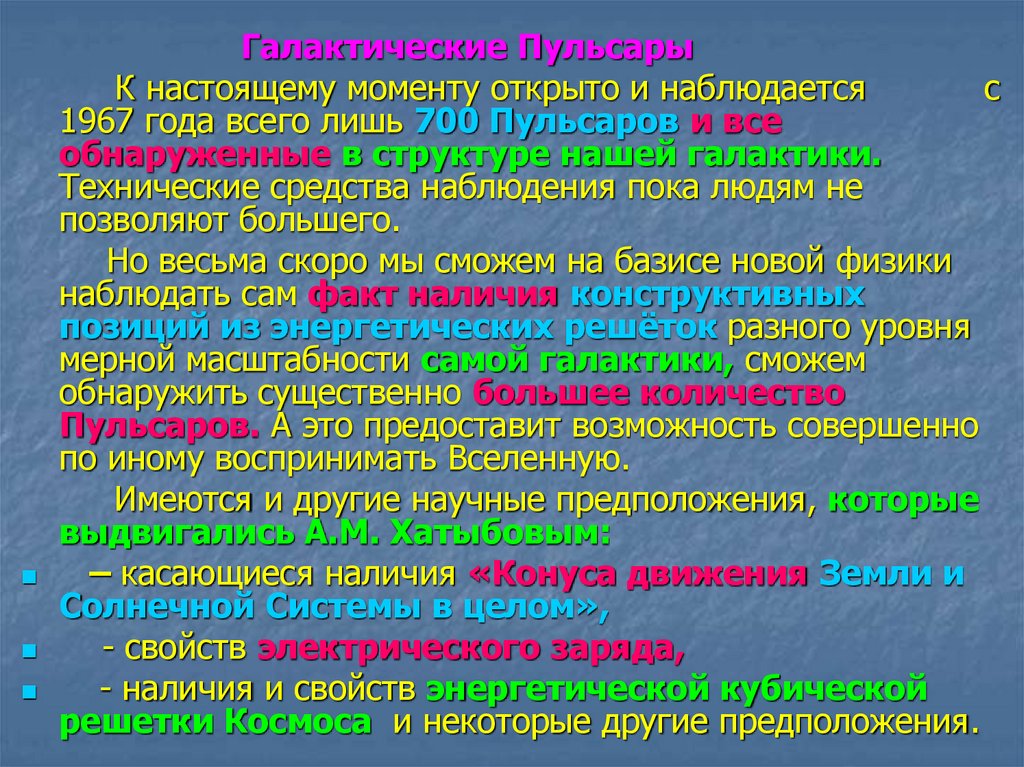 Галактические ПульсарыК настоящему моменту открыто и наблюдается