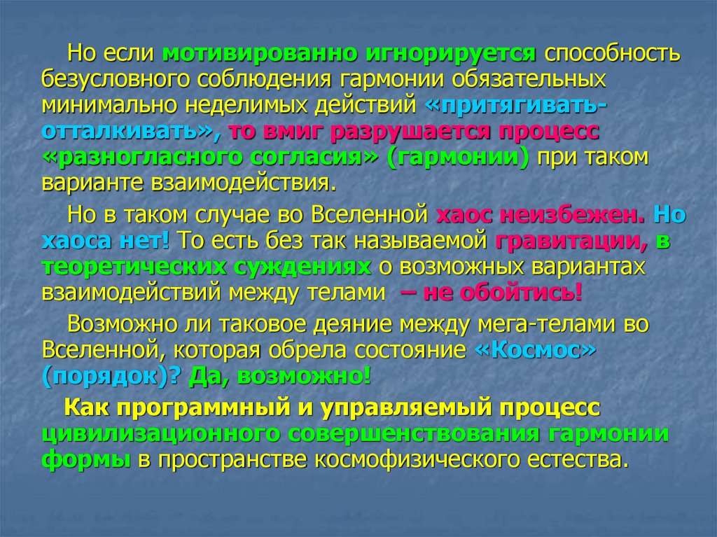Но если мотивированно игнорируется способностьбезусловного соблюдения гармонии обязательных