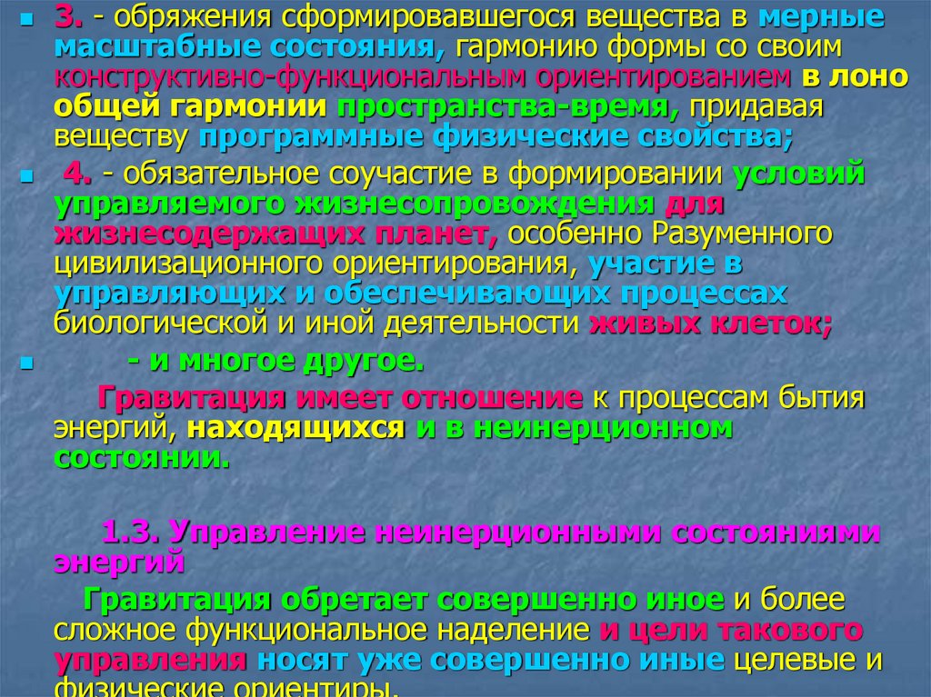 3. - обряжения сформировавшегося вещества в мерныемасштабные состояния, гармонию формы со своим